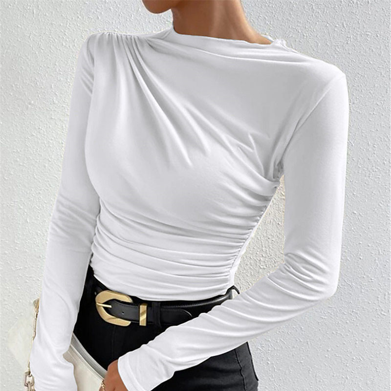 Women's Blouse Plain Elegant Stylish Sexy Long Sleeve Crew Neck Regular Tops Holiday Going out Ruched Black White Apricot Summer Spring Fall