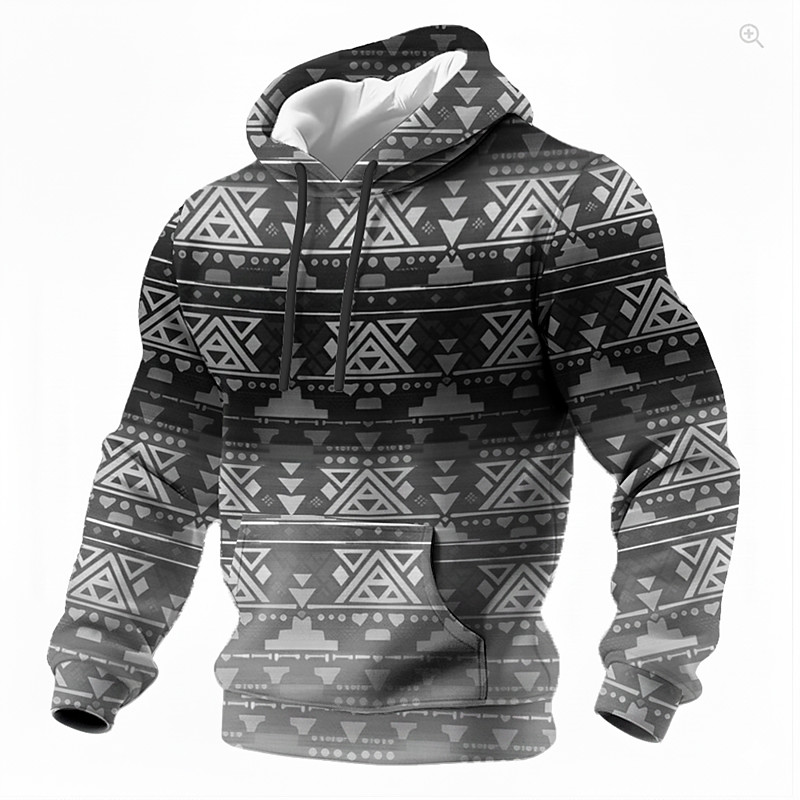Men's Aztec Hoodie Sweatshirt Ethnic Vintage Retro Crew Neck Streetwear Blue Black Green Drawstring Fall Winter Designer S M L XL XXL XXXL
