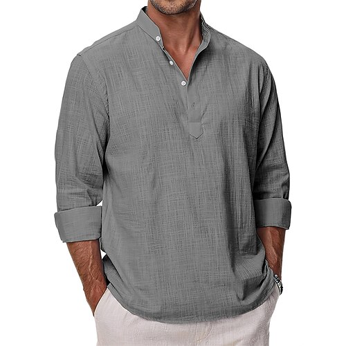 Per uomo Camicia di lino Camicia Estiva Abbigliamento da spiaggia Camicia casual Camicia con colletto alla coreana Semplice Vacanza Casuale Bianco giallo Rosa giallo Bianco Verde Grigio rosa