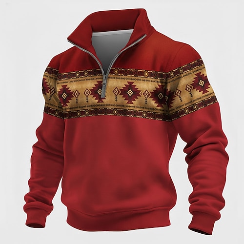 Per uomo Azteco Cowboy Felpa Etnico Vintage Retrò Collo alla coreana All'aperto Lavoro Regalo Blu Rosso Marrone Verde Cerniera Autunno Inverno progettista S M L XL XXL XXXL