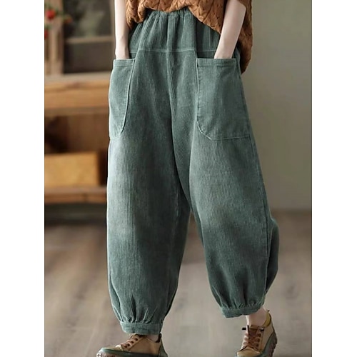 Per donna Chinos Pantaloni Larghi Vacanza Moda Streetwear Lunghezza alla caviglia Vita Alta Semplice Tasca Fascia Elastica Comodo Comodità Morbido Elasticizzato All'aperto Streetwear Nero Verde