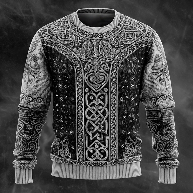 Men's Viking Tree Of Life Pullover Sweater Jumper Knitwear Crewneck Retro Vintage Casual Vacation Daily 3D Print Knitting Keep Warm Long Sleeve Spring Fall Winter Black Brown Green