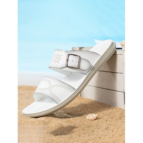 sandali bianchi da uomo: eleganti fibbie regolabili, vestibilità comoda, perfetti per matrimoni in spiaggia, vacanze estive e uscite informali