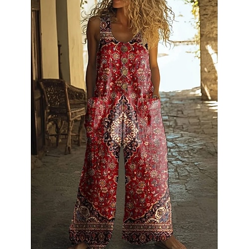 Per donna Salopette Attivo Grafico Senza Maniche Gamba larga Stampato Vacanza Streetwear Vestibilità comoda Giallo Blu Viola Estate