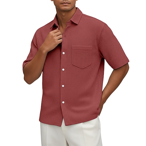Per uomo Camicia Camicia a nido d'ape Tessuto Camicia casual Camicia con Bottoni Nero Bianco Borgogna Blu marino Verde militare Manica Corta Semplice Colletto a Camicia Casuale Quotidiano Tasca