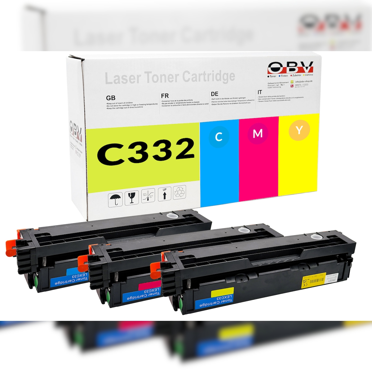 OBV Toner Set Cyan Magenta Gelb kompatibel zu C 3224 dw C 3326 dw - Ersetzt C3220C0 C3220M0 C3220Y0 - ca. 1500 Seiten. Nutze Keywords wie: Chip inklusive