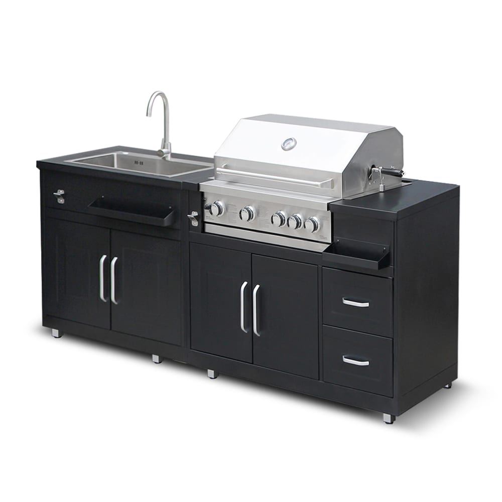 Cucina da esterno in metallo con lavello, barbecue e ripostiglio