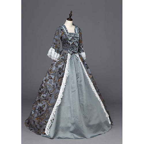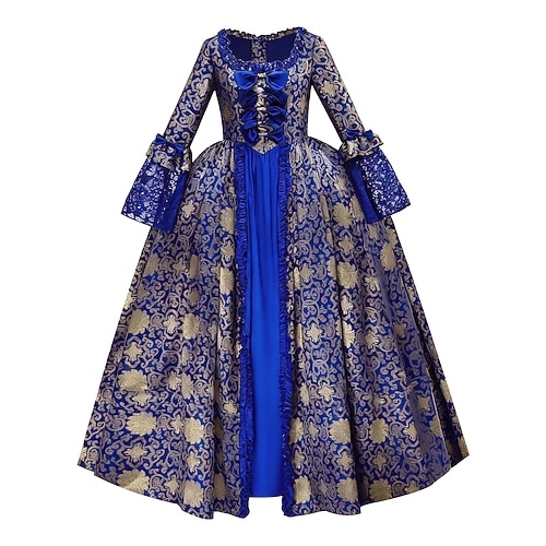 Rococò Vittoriano Rinascimento Lunghezza al pavimento Vestito Costume da festa Mascherata Taglie Forti Normale A palloncino Manica del polsino svasato Principessa Pizzo Tela Vintage Abito da ballo