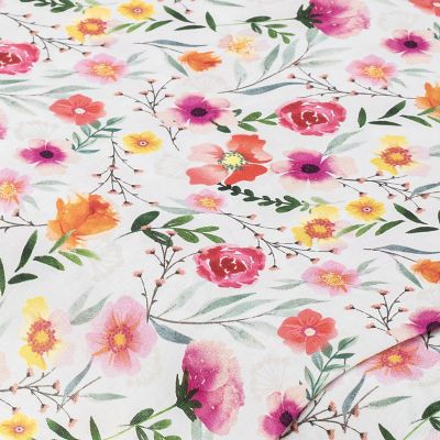 Tissu coton "fleurs printanières", blanc/coloré, série "Sina"