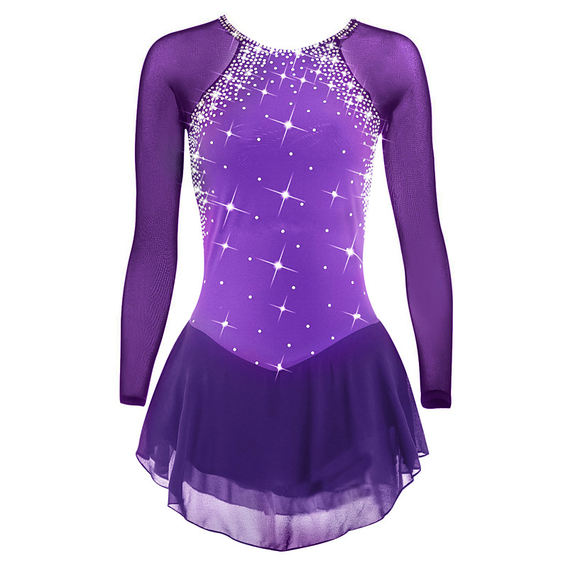 Figure Skating Dress Women's Girls' Ice Skating Dress Purple High Elasticity Training Competition Skating Wear Classic Crystal / Rhinestone Long Sleeve Ice Skating Figure Skating
