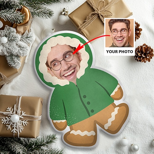 cuscino personalizzato con foto natalizia, cuscino umanoide fai da te creativo, regalo di compleanno divertente per gli amici, cuscino con foto unica, regali fotografici personalizzati per Natale.