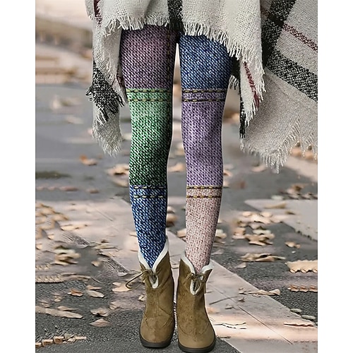 Per donna Pantaloni Leggings Leggings comodi Streetwear Casual Lunghezza intera Vita Alta Blocco di colori Elastico in vita Stampato Traspirabilità Confortevole Elasticizzato Vacanza Streetwear