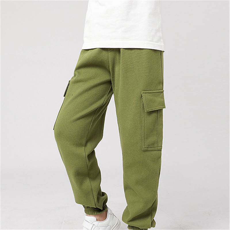 Kids Girls' Trousers Solid Color Streetwear Pocket School 4 years Spring Black White Pink