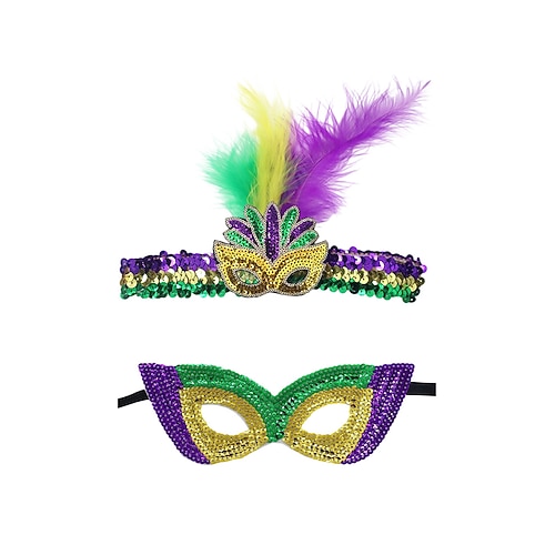 Damenschuhe Mardi Gras Polyester Pailletten-Maske und Haarband Set – Kräftige Farben mit Federn perfekt für Karneval und Maskenpartys