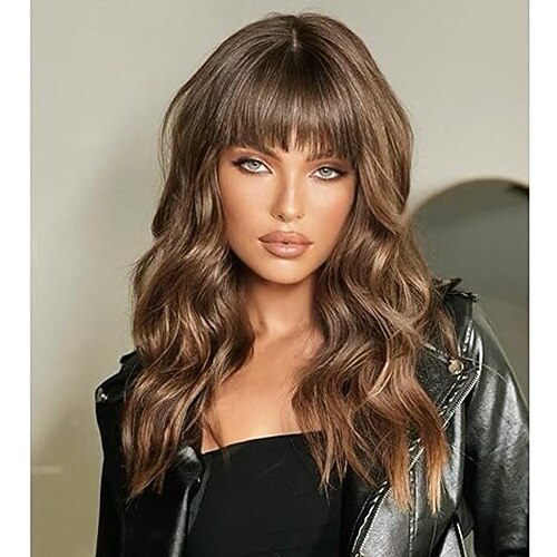 parrucca con frangia parrucche ondulate per donna lunghezza spalle parrucca sintetica riccia per festa uso quotidiano