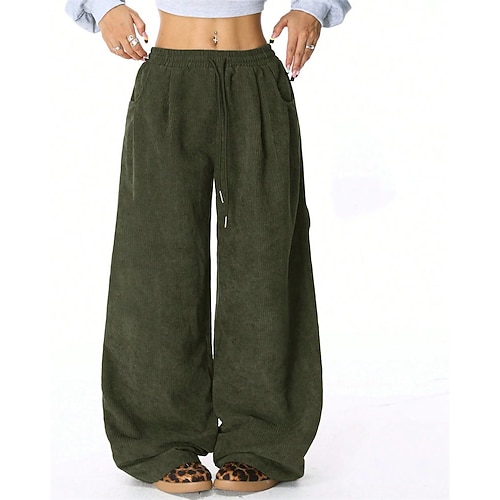 Per donna Normale Culotte Gamba Larga Gamba larga Pantaloni in cotone e lino Moda Lunghezza intera Misura del girovita medio Tinta unica Elastico in vita Gamba larga Baggy Comodità Micro-elastico