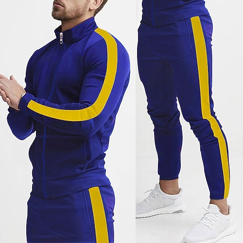 Per uomo Maglia Tuta da Ginnastica Set di abiti Collo alla coreana All'aperto Quotidiano Sportivo Coulisse Con zip Tasca Blocco di colori Giallo Rosso Blu marino Poliestere Abbigliamento sportivo