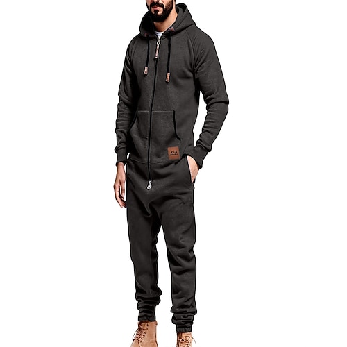 Per uomo Felpa con cappuccio Tuta da Ginnastica Tuta da Allenamento Nero Rosso Blu marino Cachi Grigio chiaro Con Cappuccio Semplice Tasca 2 Pezzi Sport Outdoor Quotidiano Ferie Poliestere