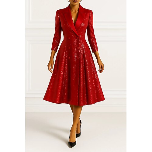 Per donna Da donna Abito da smoking Linea ad A Formale Raso Strass Elegante Vintage Manica 3/4 plissettata Lunghezza Tè Risvolto a punta Doppiopetto