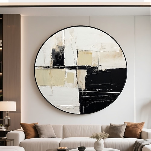 Rahmengemälde, handgefertigtes 3D-Ölgemälde, abstrakte geometrische Komposition mit lebendigen Farben, satten Farbtönen und komplizierten Pinselstrichen, die geschichtete Texturen zeigen,