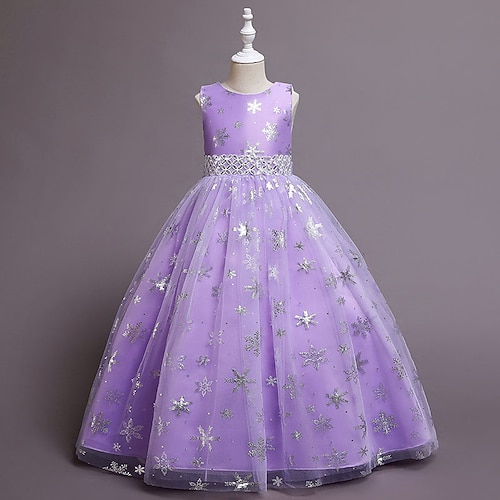 Blumenmädchenkleid Mädchen Formelle Kleidung Hochzeitskleidung Party Hochzeit Formell Elegant Mode Prinzessin Pailletten Einfarbig Ärmellos Rundhalsausschnitt Blau Silber Ab 4 Jahren