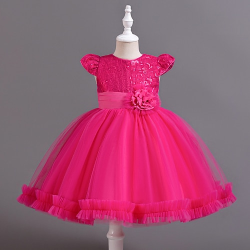 Blumenmädchenkleid Mädchen Formelle Kleidung Hochzeitskleidung Party Hochzeit Formell Niedlich Formell Prinzessin Netz Einfarbig Kurzarm Rundhalsausschnitt Rosa Rote Ab 4 Jahren