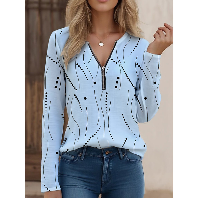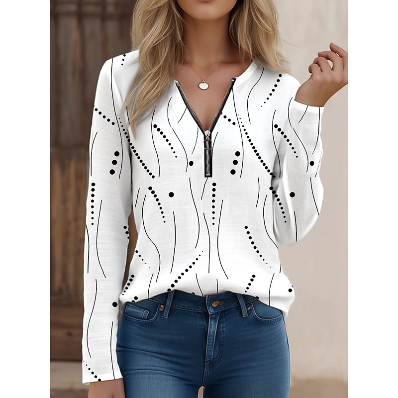 Women's T Shirt Quarter Zip Long Sleeve Casual Graphic Polka Dot Elegant Vintage Stylish V Neck Regular Tops Daily White Yellow Blue Purple Summer Spring