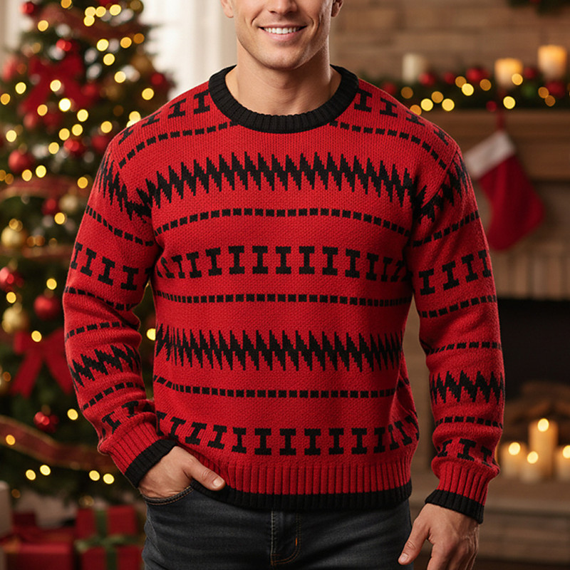 Men's Christmas Sweaters Pullover Sweater Jumper Fair Isle Sweater Knit Sweater Ribbed Knit Regular Tops Knitted Lines / Waves Crew Neck Vintage Fashion Christmas Vacation Clothing Apparel Fall Winter