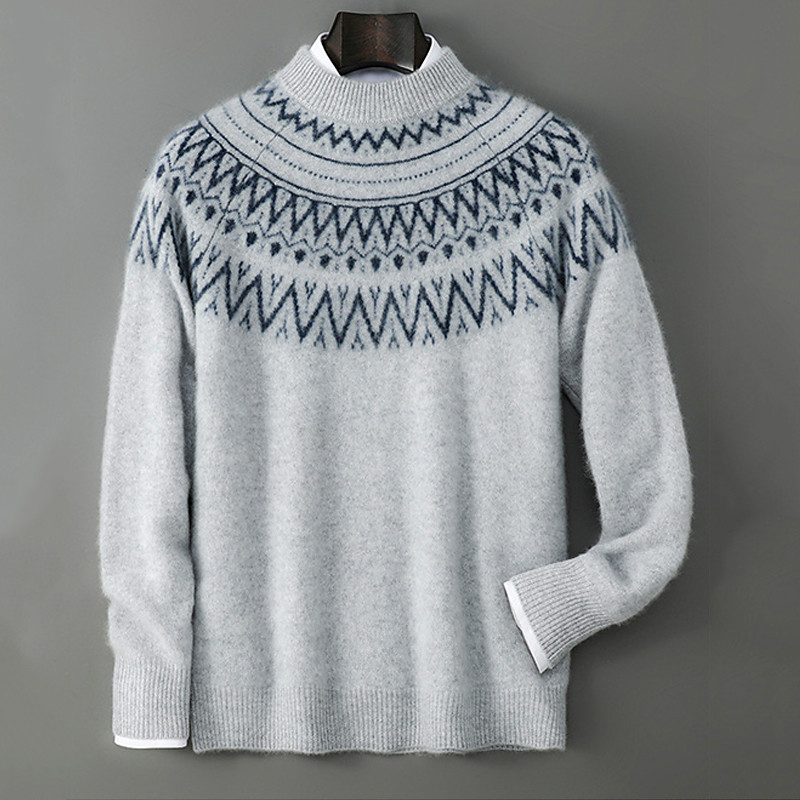 Herren-Weihnachtspullover aus hochwertiger, reiner Wolle und Kaschmir mit Rollkragen, klassischem Argyle-Strickmuster und Fair-Isle-Muster, weich, warm und atmungsaktiv.