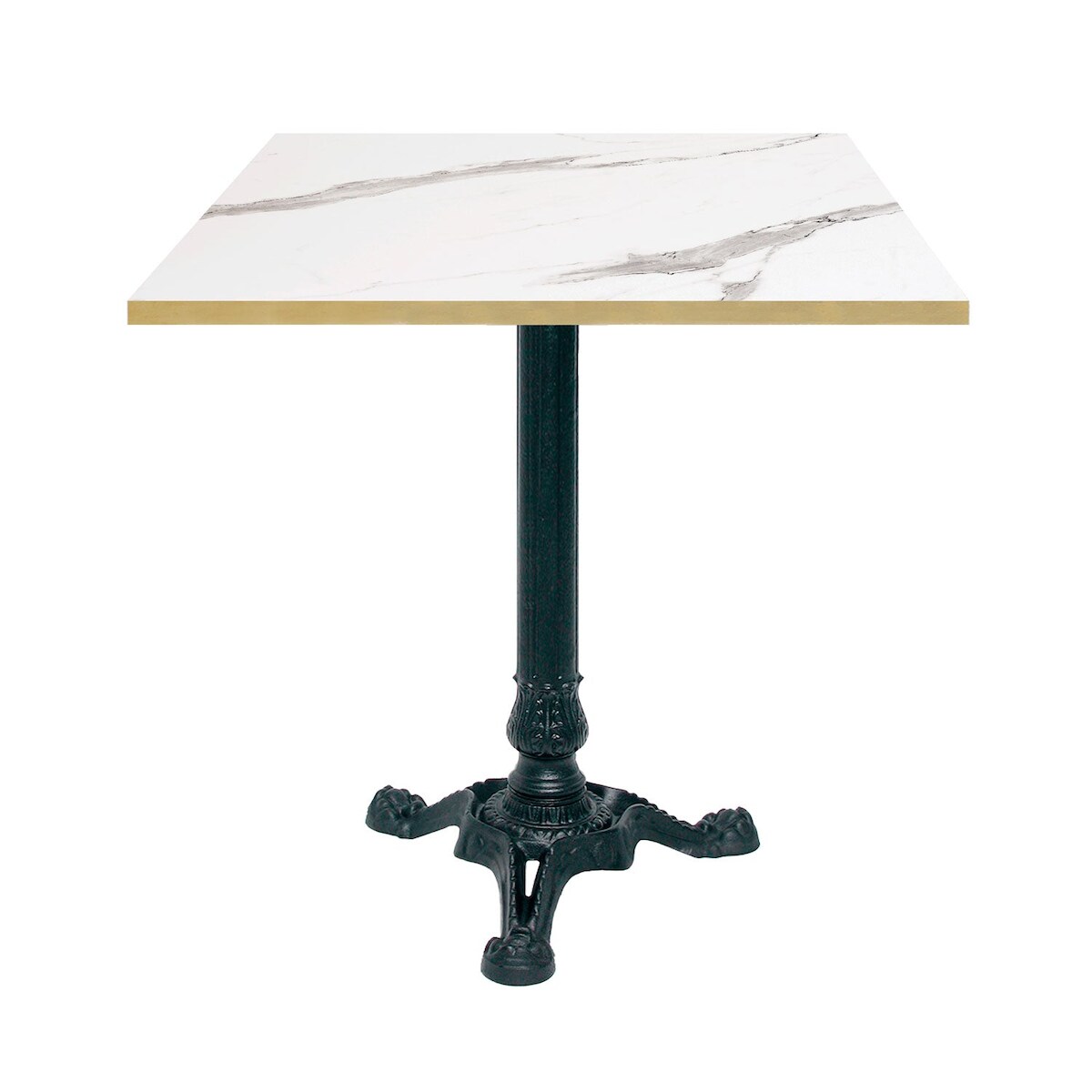Restootab Tisch Bistrot 70x70cm - Modell weißer Marmor mit messingfarbenen Kanten