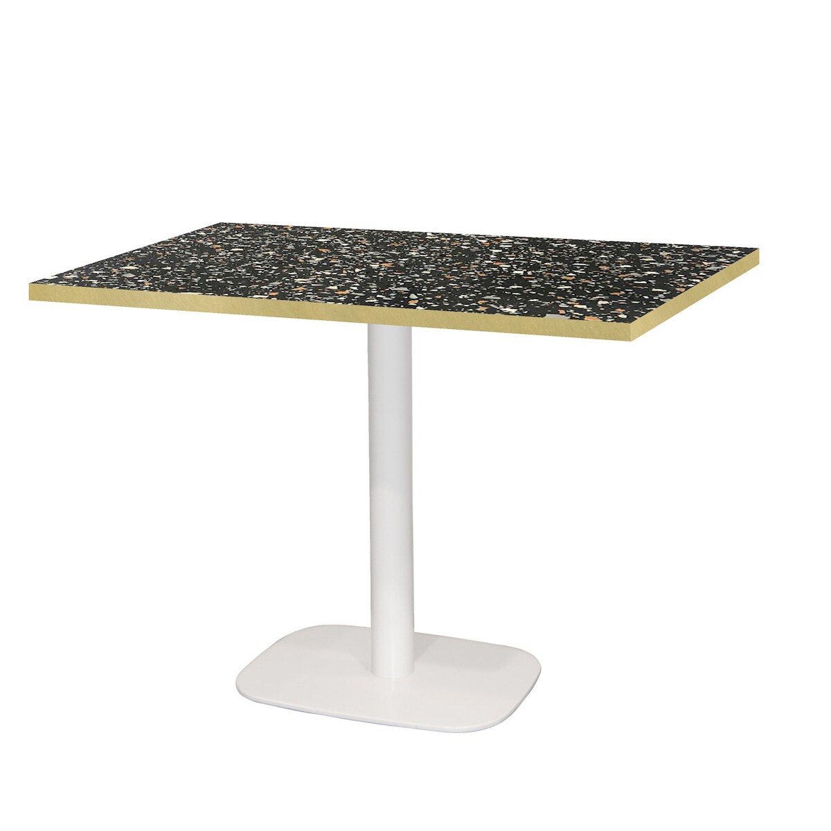 RestooTab - Tisch Round weiß 120x70 Dekor Terrazzo black chip Kanten messingfarben
