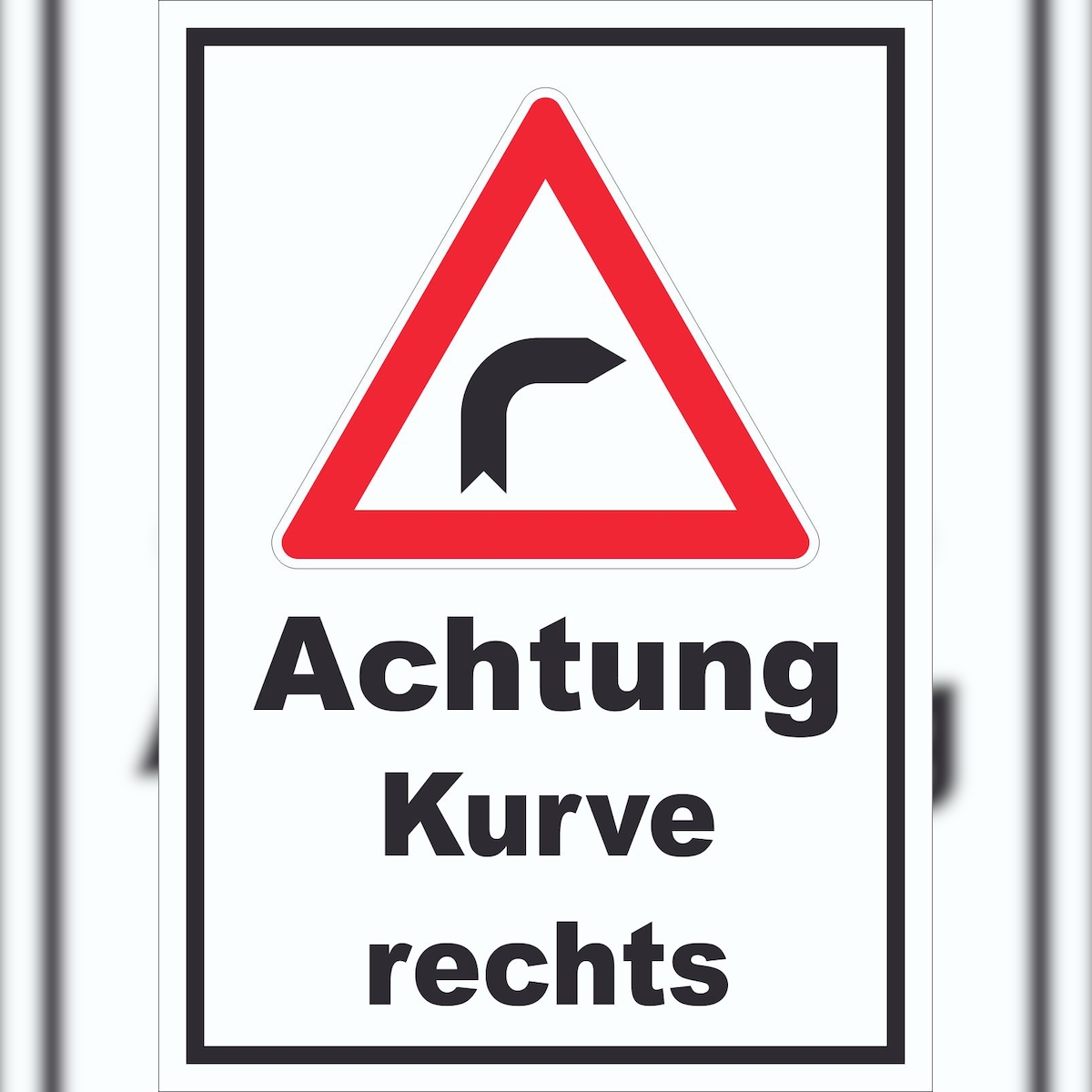 HB-Druck Schild Achtung Kurve rechts A4 (210x297mm)