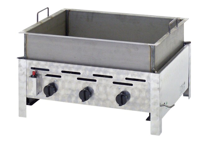 Gastrobräter, 3 Brenner je 3,6 kW, mit Grillrost, B 650 mm x T 530 mm x H 270 mm, inkl. Gewerbedruckregler u. Schlauchbruchsicherung