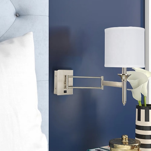 LED-Wandleuchte, Schwingarmleuchte, Stoff, Eisen, Wohnzimmer, Musterzimmer, Schlafzimmer, Nachttisch, TV-Wandkunst, Wandleuchte, 110–240 V