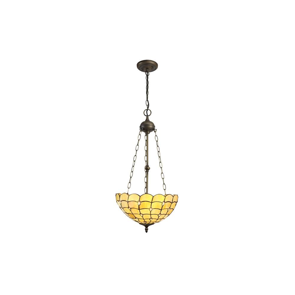 Luna 3 Light Uplighter Pendant E27 With 40cm Tiffany Shade Beige/Clear Crystal/Aged Antique Brass Luxuria