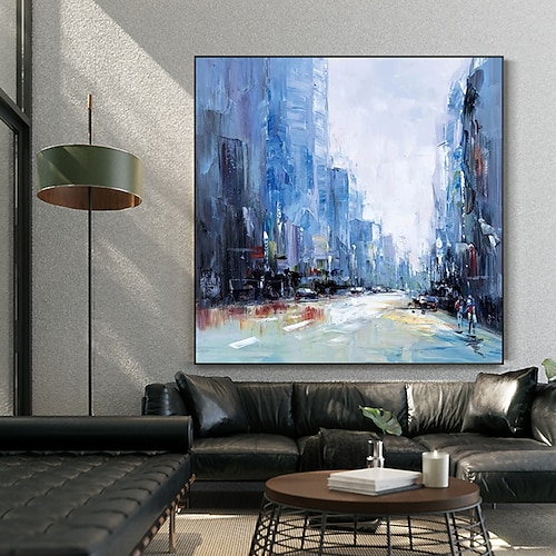 Dipinto a mano, originale, dipinto a olio su tela, grandi quadri astratti di architettura urbana, arte murale per l'arredamento della casa
