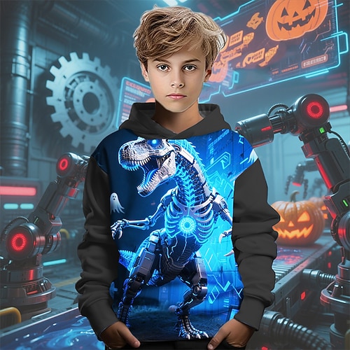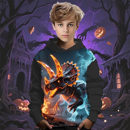 Halloween Jungen 3D Dinosaurier Kapuzensweatshirt Langarm Frühling Herbst Mode Streetwear Kinder 4-12 Jahre Mit Kapuze Outdoor Lässig Täglich Normale Passform