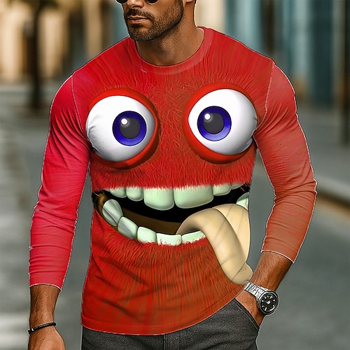Herren 3D Lustige Emotes T Shirt Langarm T-Shirt 3D-Druck Rundhalsausschnitt Hemd Mode Übertrieben Straße Täglich Rote Blau Grün Sommer Frühling Herbst Bekleidung S M L XL XXL XXXL