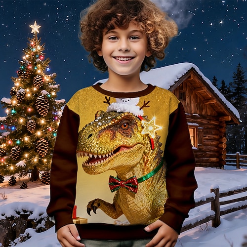 Weihnachten Jungen 3D Dinosaurier Sweatshirt Langarm Frühling Herbst Mode Basic Kinder 4-12 Jahre Rundhalsausschnitt Outdoor Lässig Täglich Normale Passform