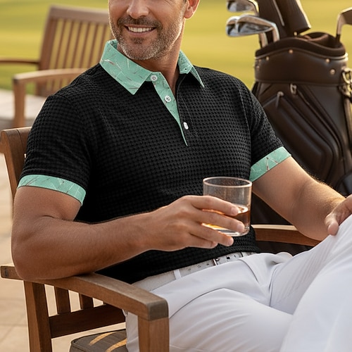 Per uomo Testurizzato Maglia da golf Casuale Affari Classico Manica Corta Moda Moderno Tinta unica Hawaii Bottoni Estate Primavera Primavera Estate Vestibilità regolare Nero Bianco Verde Cachi