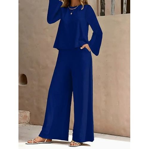 Per donna Set da due pezzi Set di Pantaloni Bolero Top Manica Lunga Girocollo Semplice Moda Streetwear Casuale Quotidiano All'aperto Blu Nero Bianco Primavera Vestibilità regolare