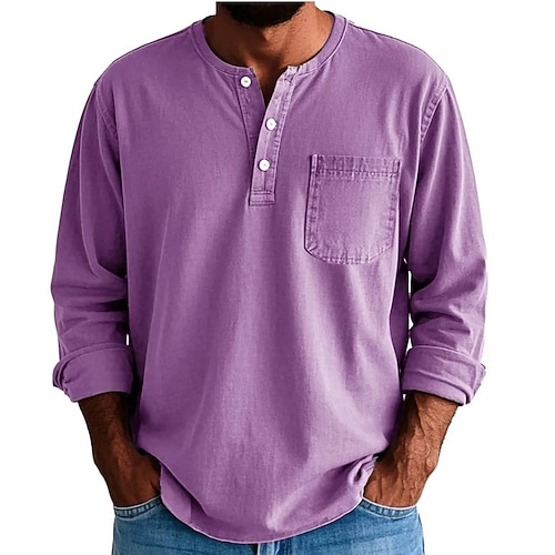 Per uomo Maglia Henley Maglietta Camicia 100% cotone lavaggio acido Top Henley Manica Lunga Tinta unica Semplice Vintage Moda Retrò Bottoni Henley All'aperto Casuale Quotidiano Estate Primavera Tutte