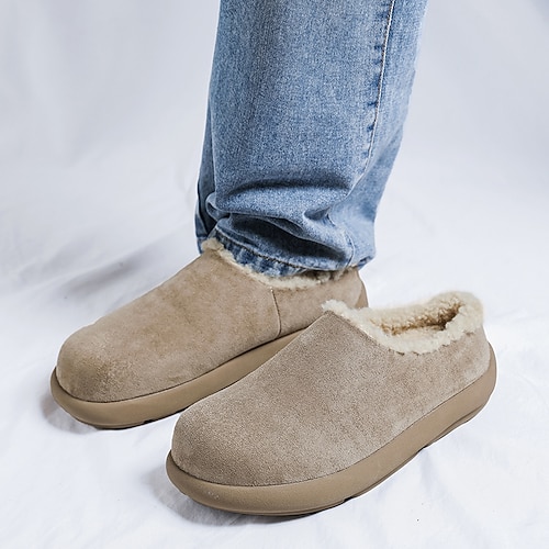 scarpe slip-on da uomo in similpelle nera con fodera in pile: calzature comode e alla moda per il clima invernale, abbigliamento casual e uso domestico