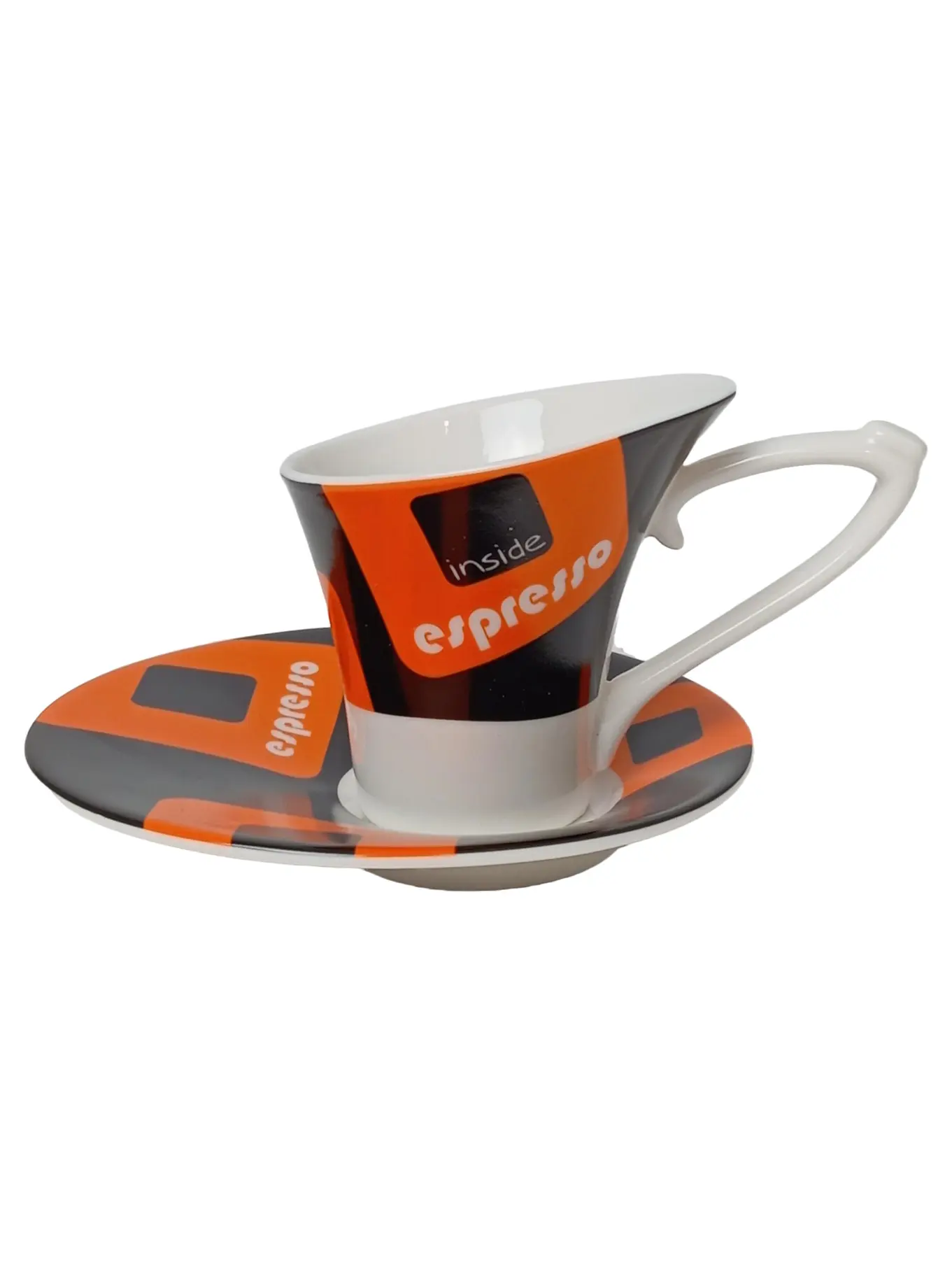CILIO Espressotasse Unterteller Orange Schwarz Schriftzug