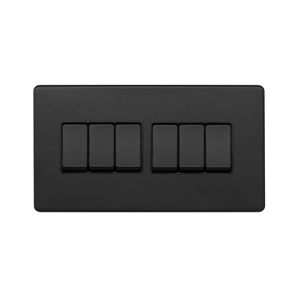 Soho Lighting Matt Black 10A 6 Gang 2 Way Switch Black Insert Screwless