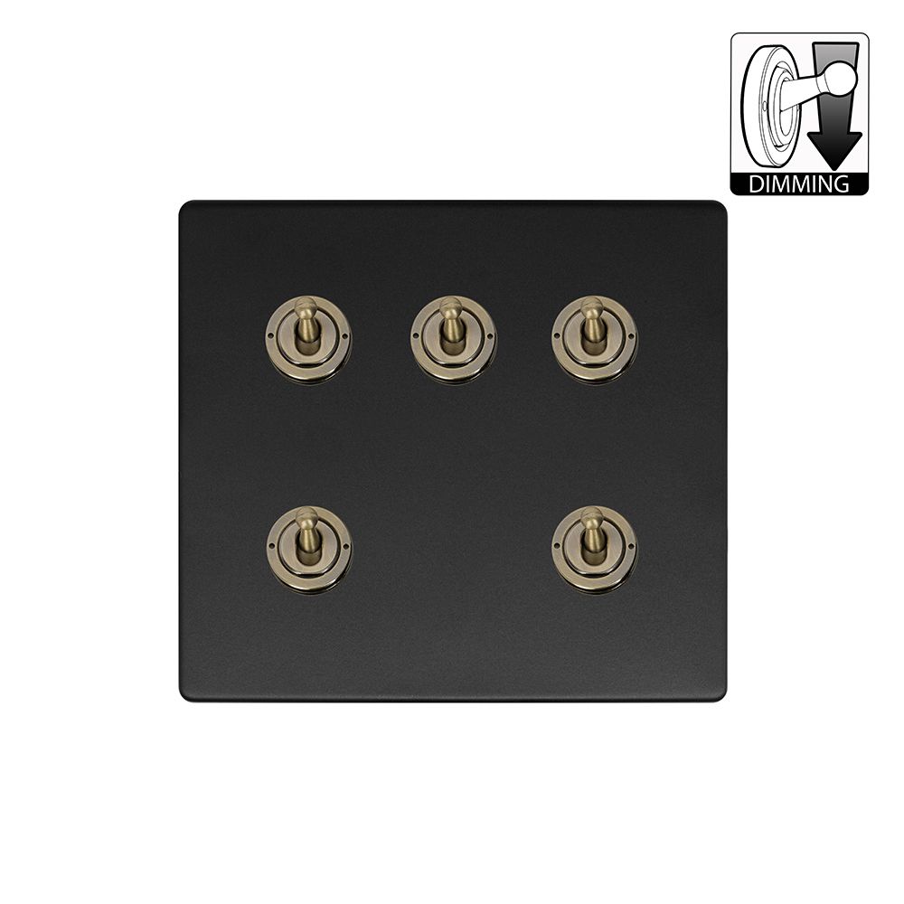 Soho Lighting Lighting Matt Black & Antique Brass 5 Gang Dimming Toggle Switch