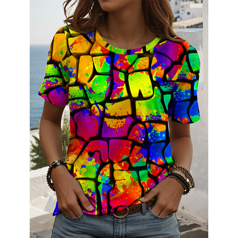 LGBT Pride Parade Pride Raindow Women's T Shirt Graphic Geometric Striped Vintage Stylish Classic Short Sleeve Crew Neck Regular Tops Daily Print Yellow Red Purple Summer Spring