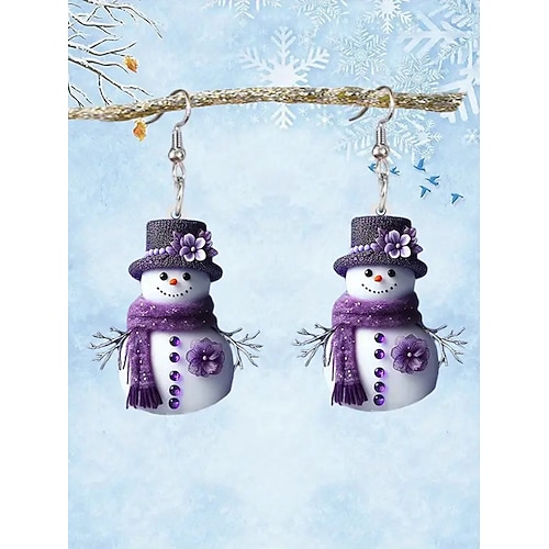 orecchini da donna a forma di pupazzo di neve in acrilico natalizio: design festoso con sciarpa e cappello, perfetti per le feste e per l'abbigliamento invernale