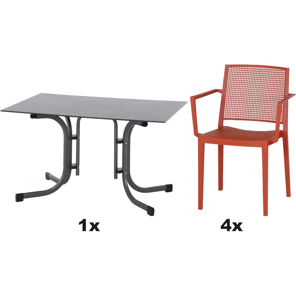 SIENA GARDEN Urban Lights Set 5teilig Square Sessel gastrotauglich brick mit Tisch Sola 120x80