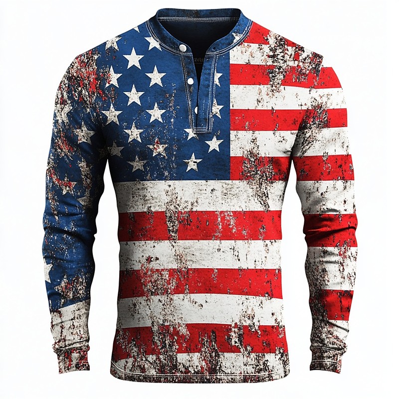 Men's Retro USA Flag Henley Shirt Long Sleeve Vintage Style Casual Casual Holiday Spring Fall All Seasons 1# 2# 3# Henley Henley T-Shirt